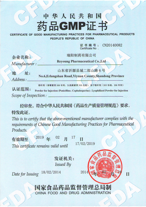 恭喜我公司合作的瑞陽制藥有限公司順利獲得GMP證書!